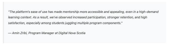 Digital Nova Scotia had this type of problem. They were running a program for 450+ learners across four provinces. Time was tight. And mentorship kept falling through the cracks.