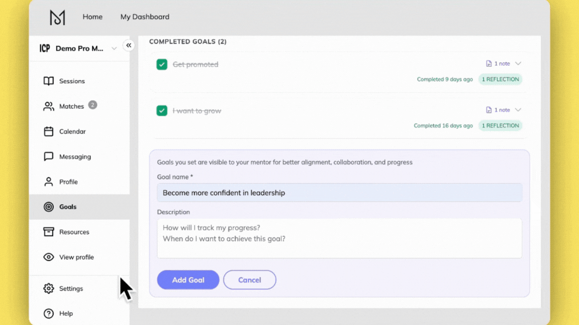 Want to see how it works? Learn more about Goals in Mentorly